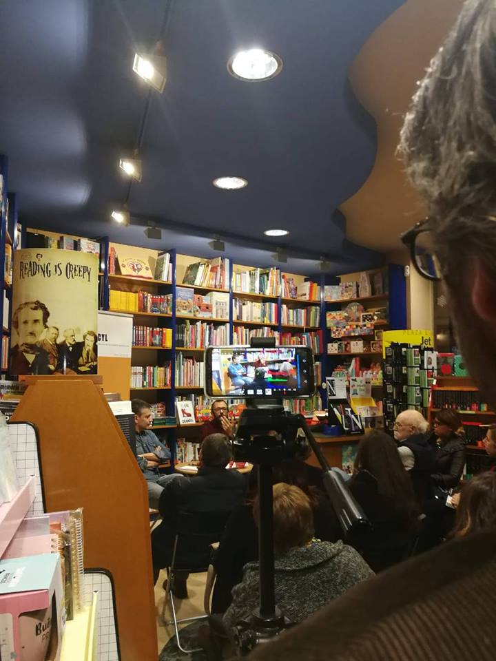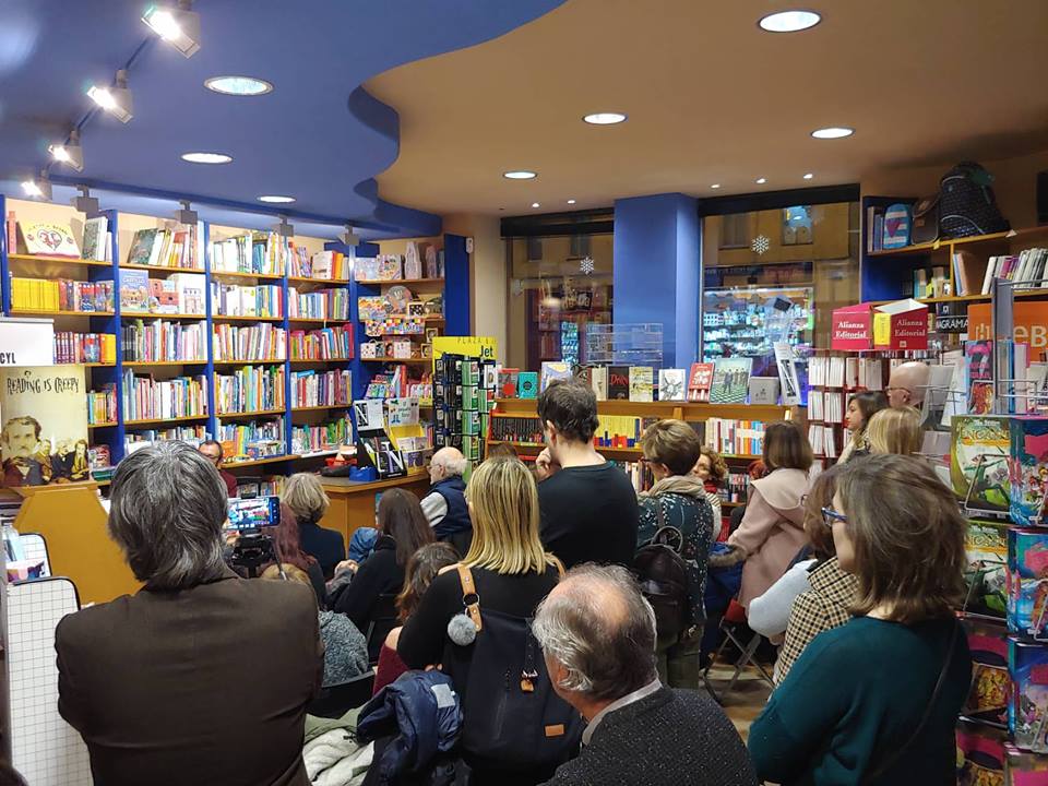 Esto no hubiera sido posible sin el buen hacer de Clara y su Librería Octubre que ha cogido el relevo de Miguel Núñez, antiguo socio de aventuras socyleras. Por lo que parece, la ciudad tiene ganas de este tipo de actos culturales y la librera tuvo que poner el cartel de aforo completo con más 30 personas.